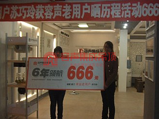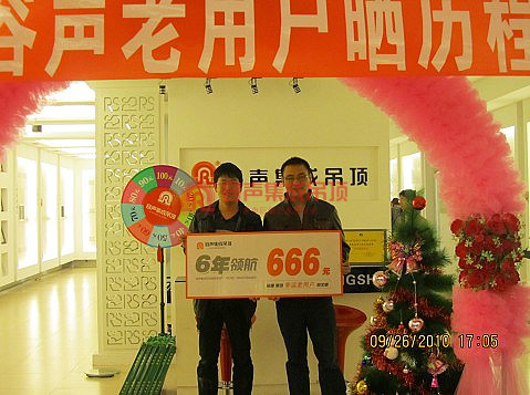 2011年4月1日至2012年3月31日登錄容聲集成吊頂官網(wǎng)【www.www.hyzsc.com】,點(diǎn)擊“申請(qǐng)用戶檔案”,完整填寫真實(shí)有效的購(gòu)買及安裝信息,即可參加每月感恩抽獎(jiǎng)活動(dòng)。12個(gè)月、每月6位,72次機(jī)會(huì)得666元現(xiàn)金返還。登記越早,機(jī)會(huì)越多。