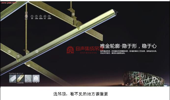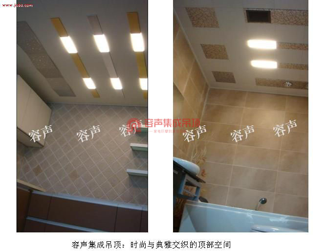 由于吊頂是大面積鋪設(shè),并是在平視的視線角度之內(nèi),如果吊頂?shù)牟牧?、圖案角度、配色頂部電器的位置不當,則會使廚房衛(wèi)生間的整體檔次大打折扣,選擇一款全面的吊頂,就是選擇“頂美”的空間,這種“頂美”的享受,必然是現(xiàn)代家庭裝修的趨勢。由此,容聲吊頂應(yīng)潮流而誕生。