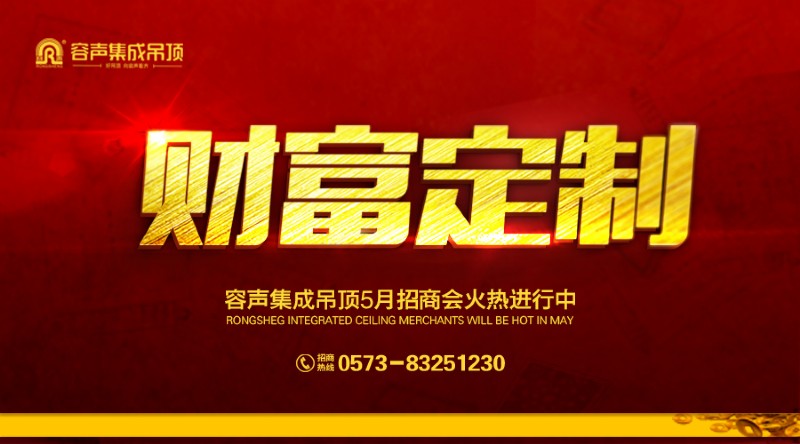 容聲集成吊頂即將舉辦“財(cái)富定制”第三期招商會(huì),真誠歡迎意向客戶前來參加,加入容聲這個(gè)大家庭,攜手共創(chuàng)美好明天!