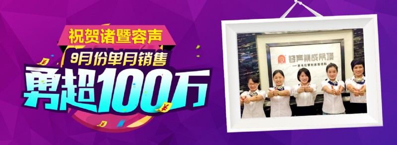 諸暨容聲集成吊頂?shù)辏?月份諸暨容聲團(tuán)隊(duì)激情高漲,在沒(méi)有任何砍價(jià)會(huì)的情況下,簽單80單,銷(xiāo)售額突破100萬(wàn),創(chuàng)造一個(gè)新的銷(xiāo)售神話(huà)。