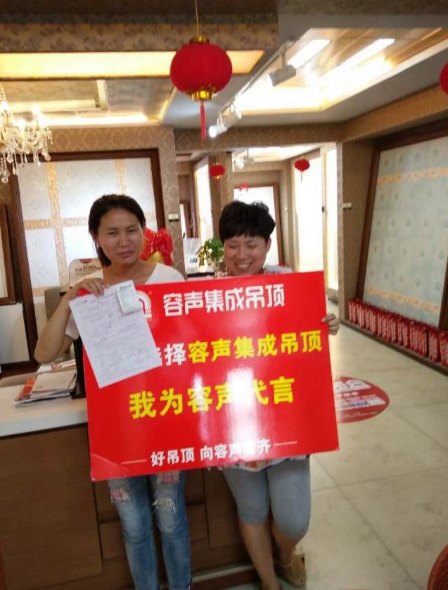 客戶簽單絡(luò)繹不絕,在此感謝所有新老客戶對容聲集成吊頂一如既往的支持與厚愛,你們是容聲人前進的動力,我們將會做得更好,為廣大消費者提供最優(yōu)質(zhì)的吊頂、最貼心的服務(wù),讓您享受高品質(zhì)的家居生活。