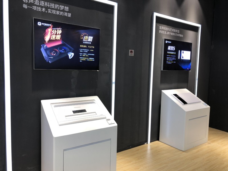 容聲主展館以深棕色為主色調,輔之以容聲藍,大氣優(yōu)雅,穩(wěn)重中不失靈動,展現了容聲一直以來給人的清新靚麗形象。展館內分區(qū)明確,精心設計的展廳充滿了藝術氣息。