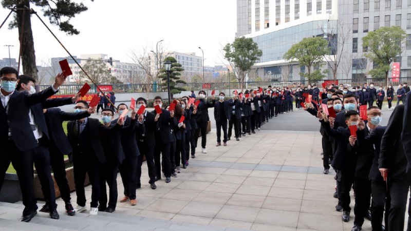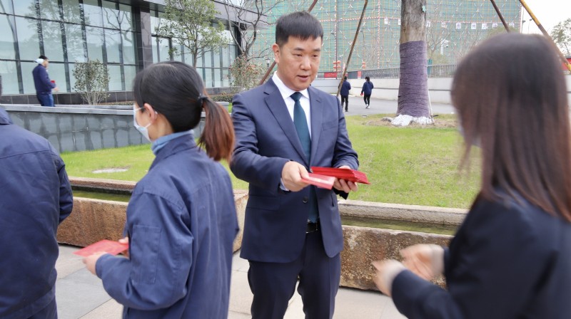 董事長(zhǎng)派發(fā)大吉大利的開門紅包,寓意新的一年紅紅火火——