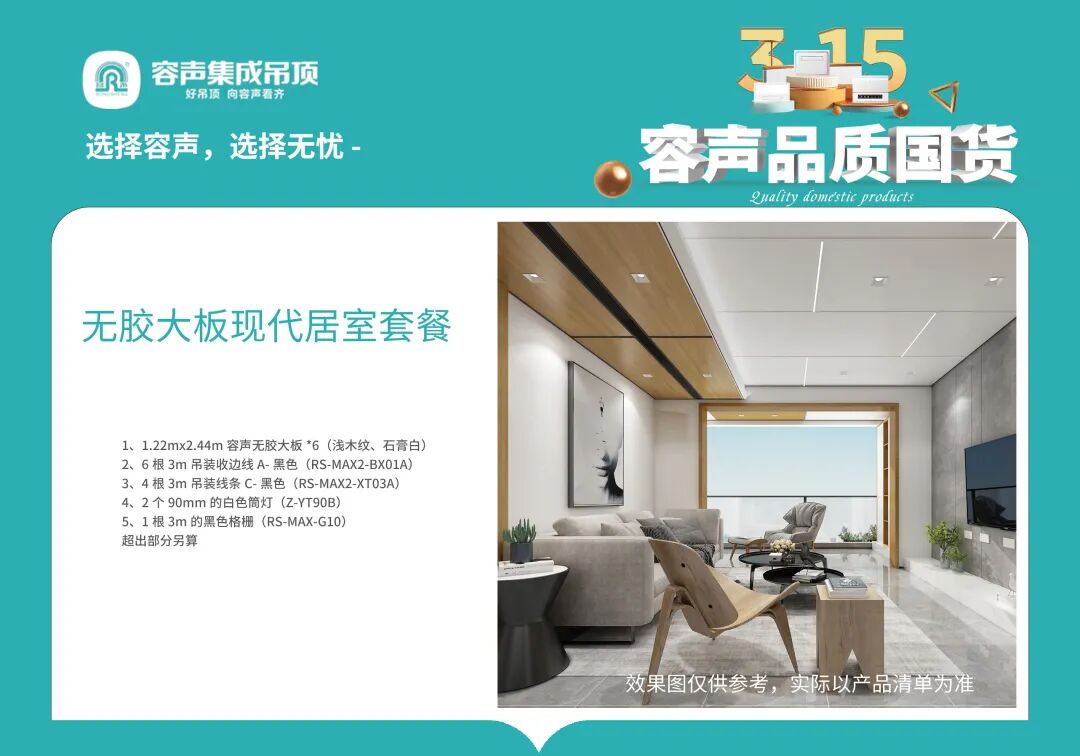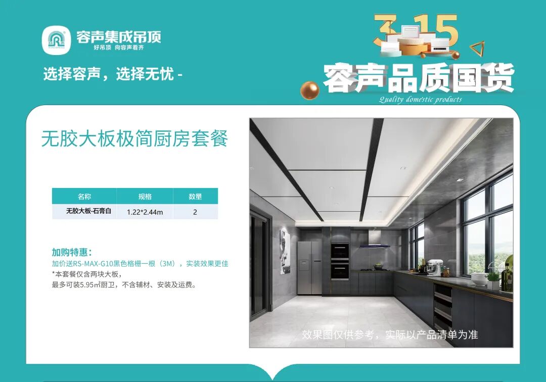 本次315活動(dòng),容仔為大家準(zhǔn)備了“極簡(jiǎn)無膠大板廚房套餐”和“現(xiàn)代無膠大板居室套餐”兩大特惠套餐,務(wù)必讓您的新家“裝”得漂亮!