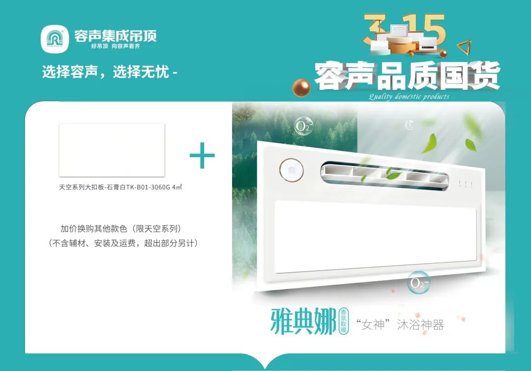 本次特別推出了“雅典娜+天空系列大扣板”的衛(wèi)浴特惠套餐,大扣板大規(guī)格,大氣不加價(jià),讓您的衛(wèi)生間更有女神范!