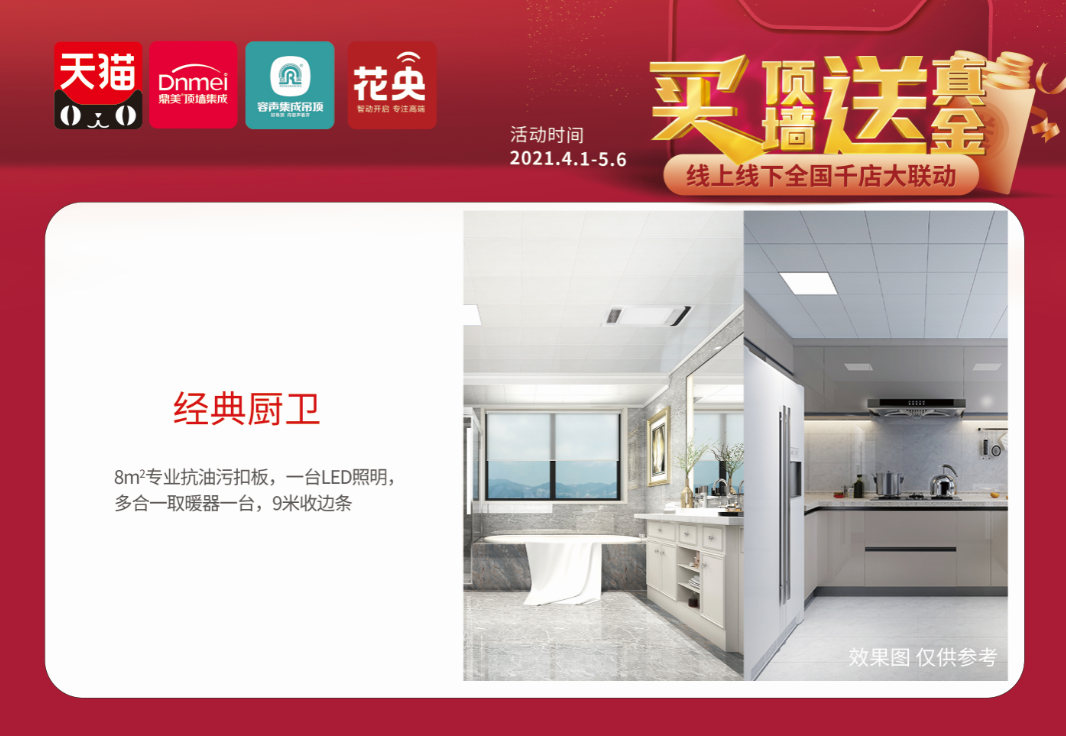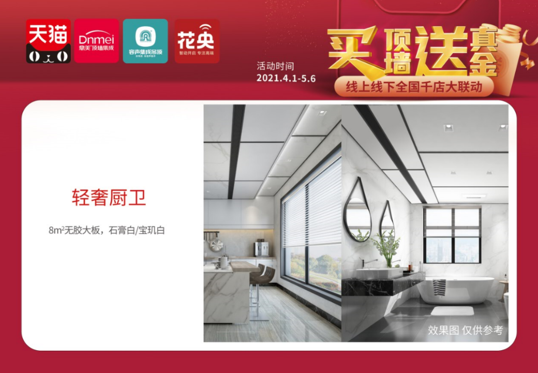 針對不同需求的顧客,本次活動貼心推出了典雅衛(wèi)生間扣板套餐、經(jīng)典廚衛(wèi)扣板套餐、輕奢廚衛(wèi)大板套餐,最大限度滿足廣大顧客的廚衛(wèi)吊頂需求。