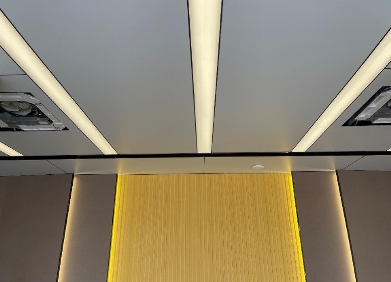 在選材上,很多常見的材料其實(shí)并不適合會議室使用,比如乳膠漆、瓷磚和石材。這些材質(zhì)容易使聲波和光波產(chǎn)生反射,從而影響會議室的整體視聽效果,容聲無膠大板選用優(yōu)質(zhì)鋁材,通過食品級流延膜將鋁板與蜂窩芯熱熔復(fù)合,無液體膠,綠色環(huán)保,隔音防腐,快裝便捷,更適用于會議室裝修。