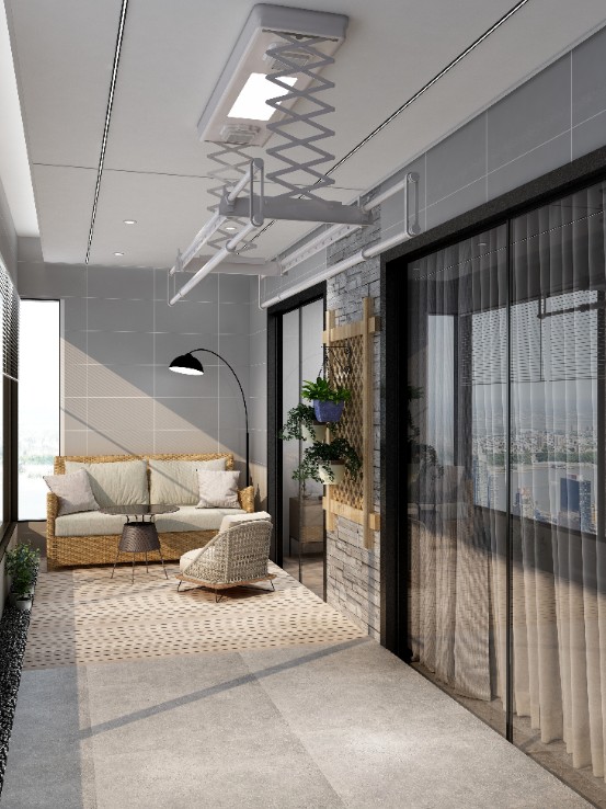 此外,生活陽臺不可避免地會比較雜亂,所以最好是獨立設(shè)計,通過玻璃門與客廳或臥室隔開,將生活的瑣碎限制在陽臺內(nèi)。
