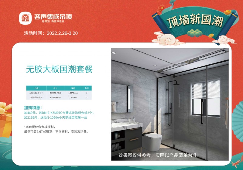 二號國潮套餐為大家準(zhǔn)備的是新品歐若拉+天空系列大扣板的特惠廚衛(wèi)套餐,簡約百搭,性價比王者!