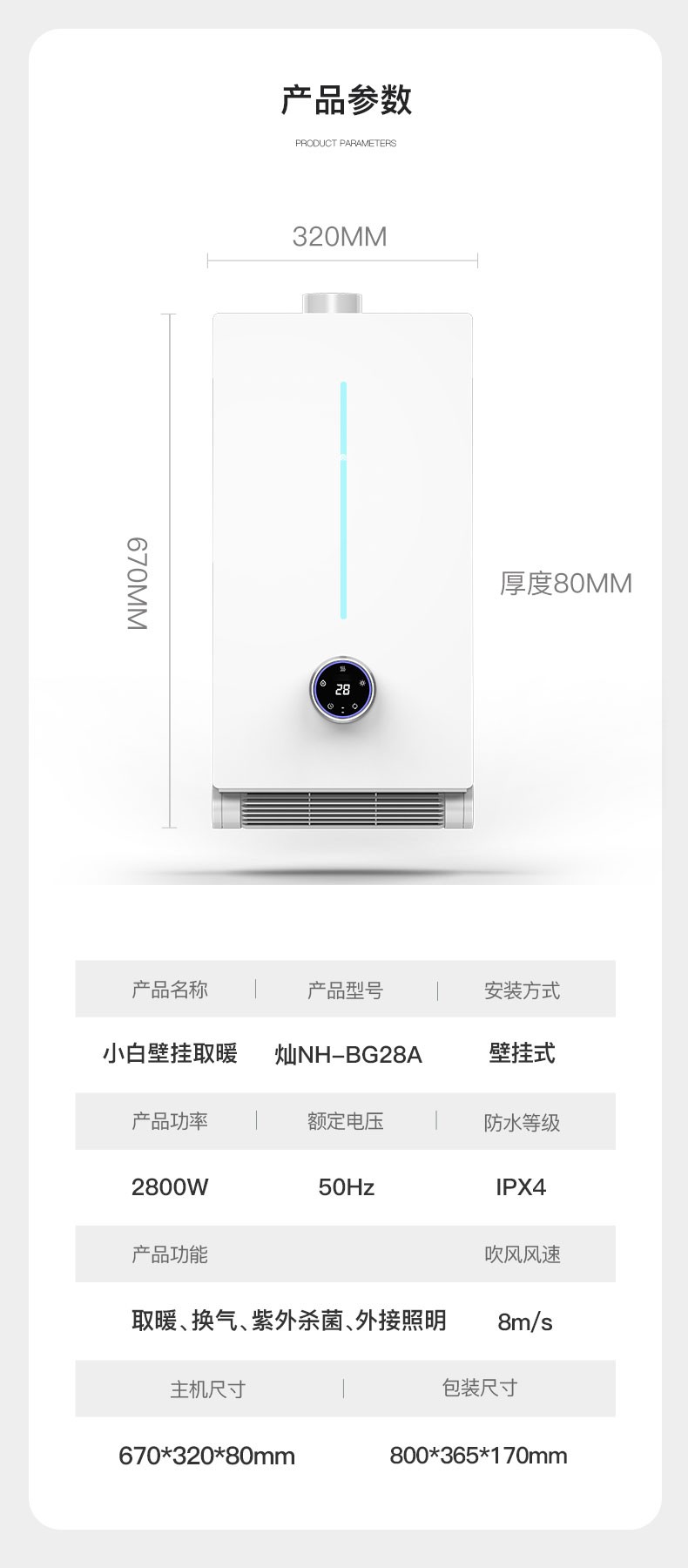 2800W大功率取暖,8m/s送風(fēng)距離,全域速暖無(wú)需等待,干濕區(qū)無(wú)溫差,穿衣脫衣也不冷,對(duì)寶寶沐浴特別友好哦!