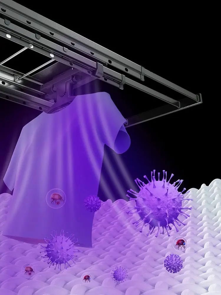 超聲波除螨與負離子除菌的雙重加持,衣物晾曬之余深層除菌除螨,曬的健康,穿的安心。