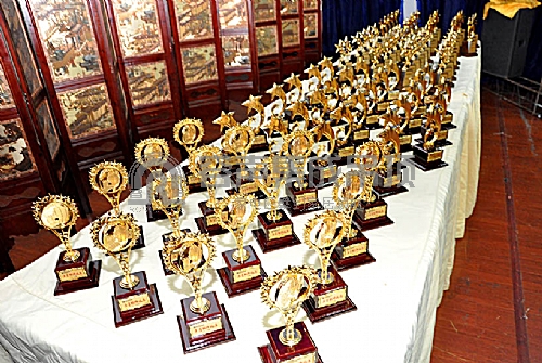 等待頒發(fā)的各項(xiàng)榮譽(yù)獎(jiǎng)杯
